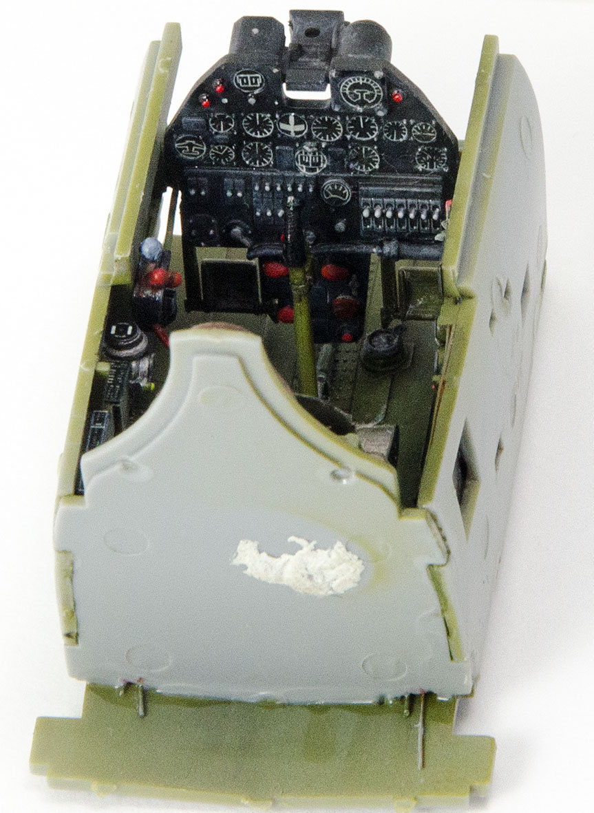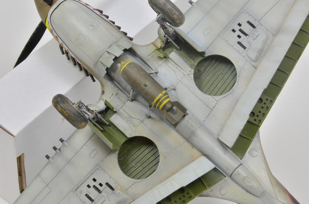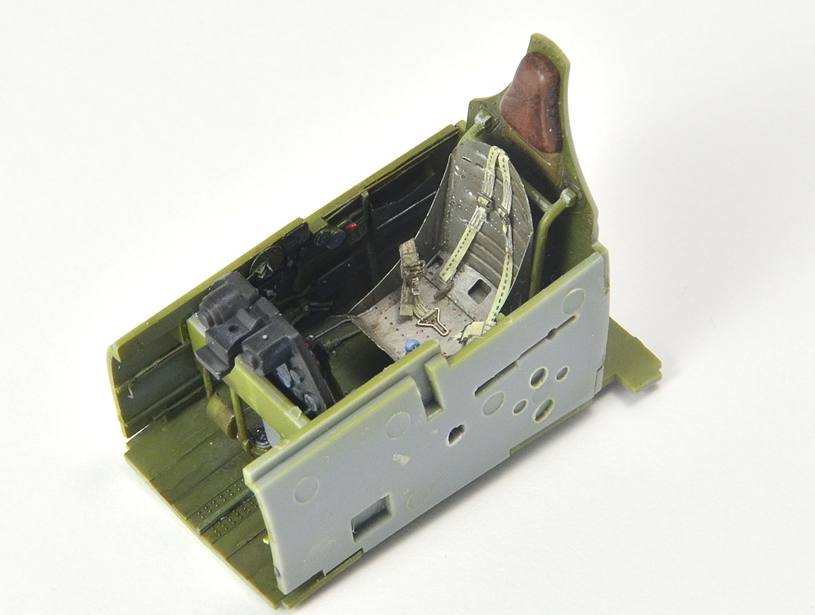 tzv "rychlostavba" pohodové stavebnice se jako obvykle trochu zvrhla. Především to způsobily plechy Eduard resp sada BigEd. Musím ale říci, že kromě pár detailů exteriéru, klapek něco málo z interiéru stejně nic nepoužiju. U dvaatřicetin typu Hasegawa nebo Tamiya se mi zdají např plechy do interiéru krokem zpět.původně jsem vážil, jestli se mám pustit nějakých větších úprav, jako např. otevřených zbraňových šachet, ale pak jsem to zavrhl. Hlavní ozdobou tohoto modelu bude efektní USAF kamufláž s červeně lemovanými znaky vzor VI-X 1943
