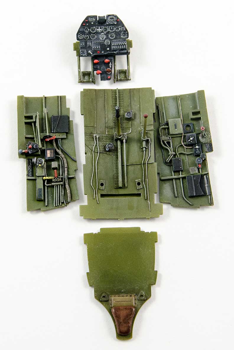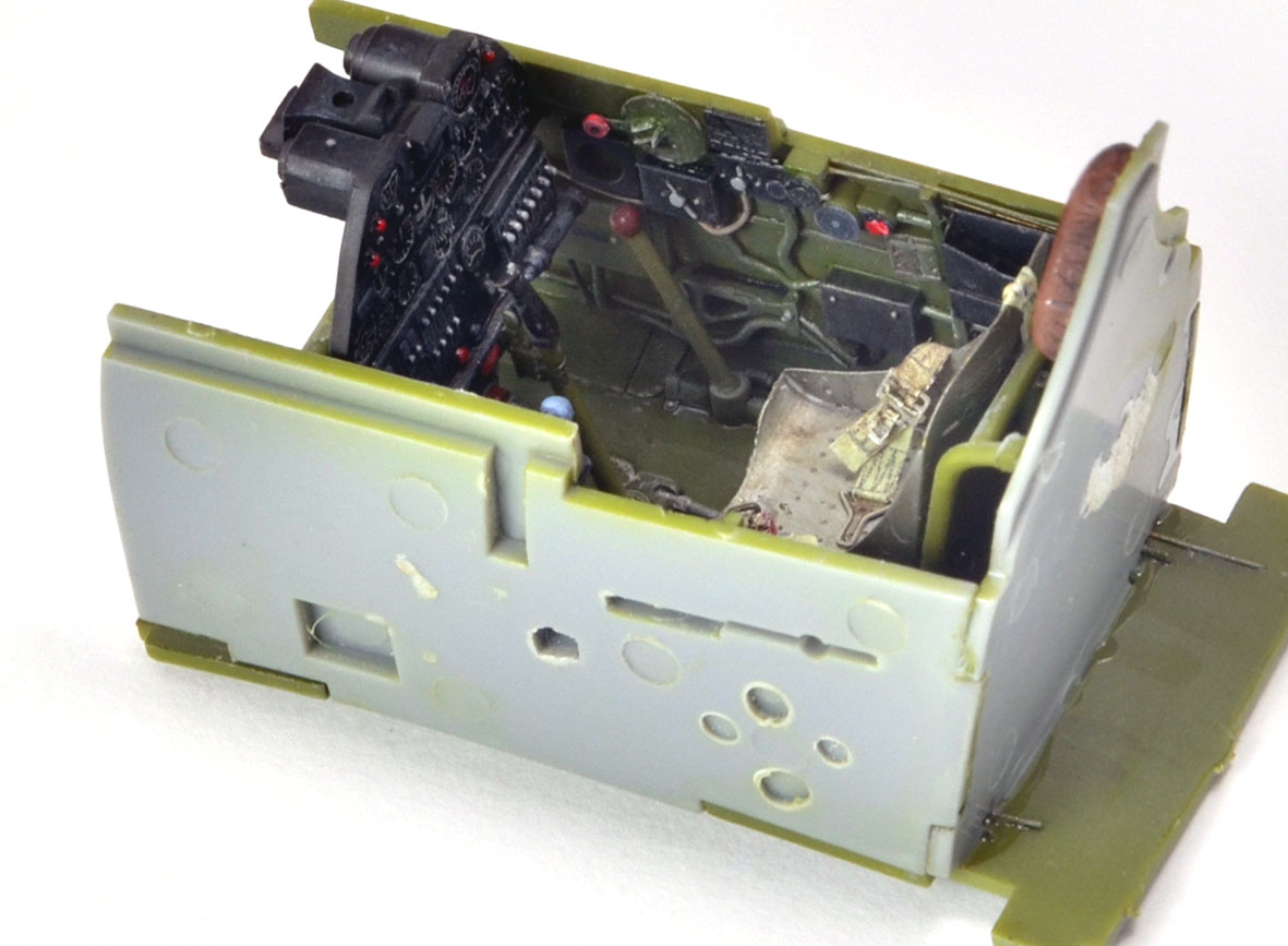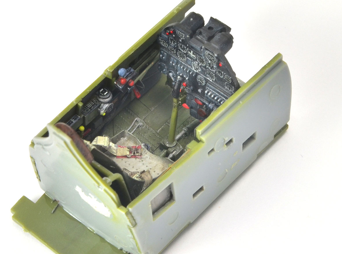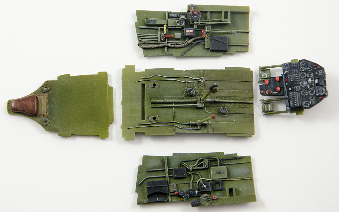 tzv "rychlostavba" pohodové stavebnice se jako obvykle trochu zvrhla. Především to způsobily plechy Eduard resp sada BigEd. Musím ale říci, že kromě pár detailů exteriéru, klapek něco málo z interiéru stejně nic nepoužiju. U dvaatřicetin typu Hasegawa nebo Tamiya se mi zdají např plechy do interiéru krokem zpět.původně jsem vážil, jestli se mám pustit nějakých větších úprav, jako např. otevřených zbraňových šachet, ale pak jsem to zavrhl. Hlavní ozdobou tohoto modelu bude efektní USAF kamufláž s červeně lemovanými znaky vzor VI-X 1943