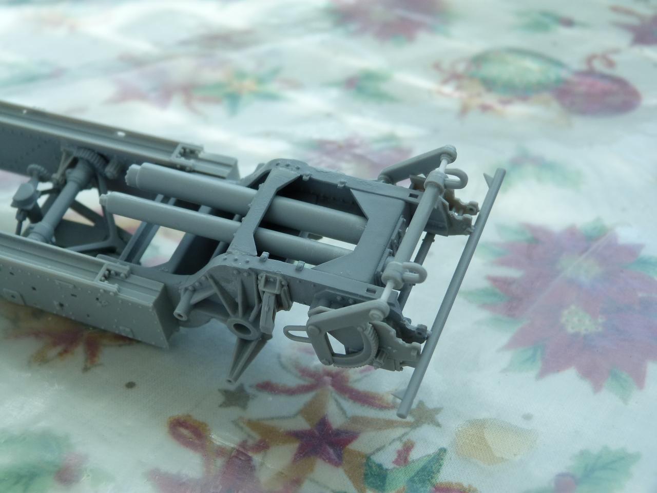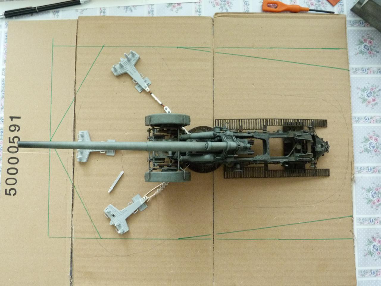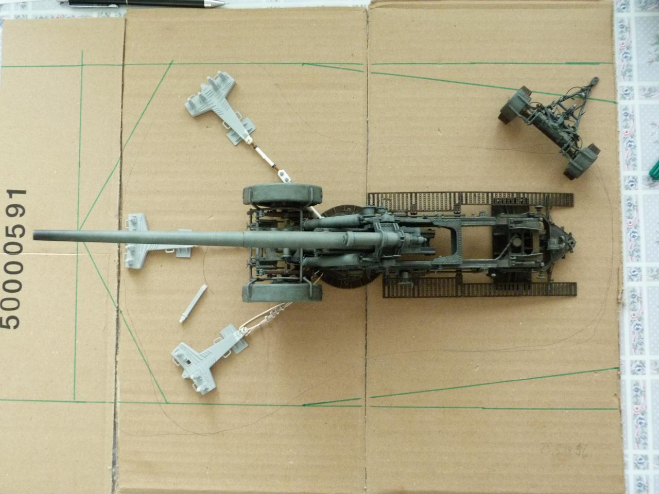 Stavebnice Trumpeter 1/35 je solidní, až na několik drobných detailů..... Tak, kde udělali soudruzi v Číně chybičku? Chybí vzduchové hadice k brzdovým válcům (kolesna i šasí),chybí el.kabeláž,kola jsou v transportní poloze,přičem mechanizmus palebné opěry se zdá býti v palebném postavení,chybí válec tlumení zákluzu hlavně v kolébce ,chybí kotvy pro ukotvení kanonu v palebném postavení atd.