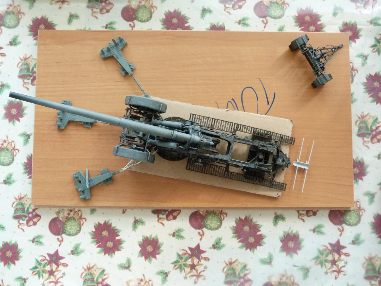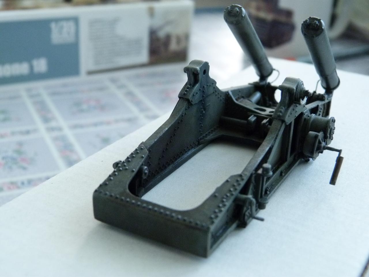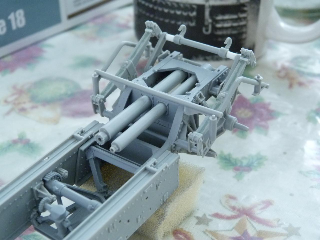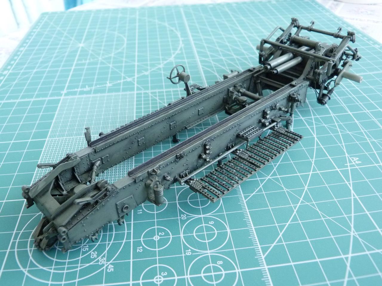 Stavebnice Trumpeter 1/35 je solidní, až na několik drobných detailů..... Tak, kde udělali soudruzi v Číně chybičku? Chybí vzduchové hadice k brzdovým válcům (kolesna i šasí),chybí el.kabeláž,kola jsou v transportní poloze,přičem mechanizmus palebné opěry se zdá býti v palebném postavení,chybí válec tlumení zákluzu hlavně v kolébce ,chybí kotvy pro ukotvení kanonu v palebném postavení atd.